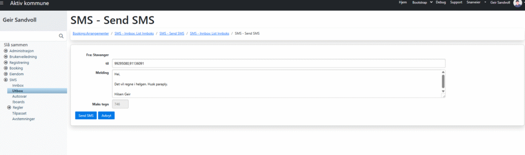 - Ta kontakt med Stavanger kommune om det er aktuelt for din kommune å aktivere SMS-utsending fra Aktiv kommune.